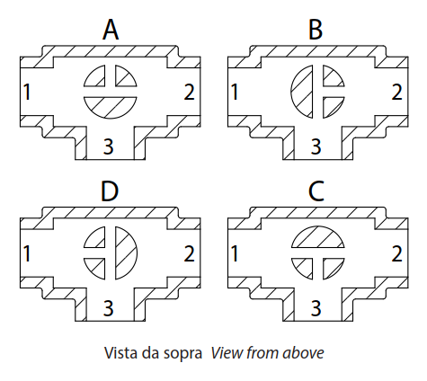 活塞球上配備了4個密封圈,使介質(zhì)流體在其中一個接口關(guān)閉情況下能朝所有方向流動。