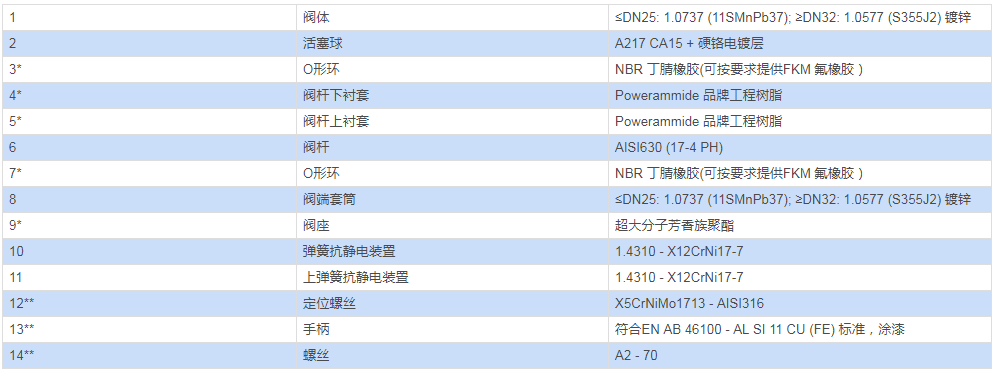 工作溫度:從-20 °C至+100 °C,O形環(huán)采用NBR丁晴橡膠