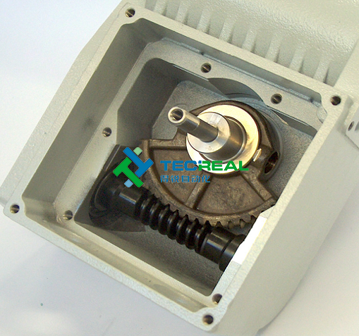 傳動:最后一級傳動系統(tǒng)是蠕動螺桿和預(yù)裝齒圈的輸出軸。
