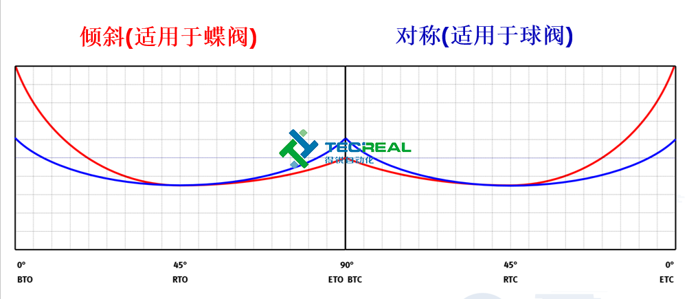 單動(dòng)執(zhí)行器兩種類型的扭矩曲線對(duì)比