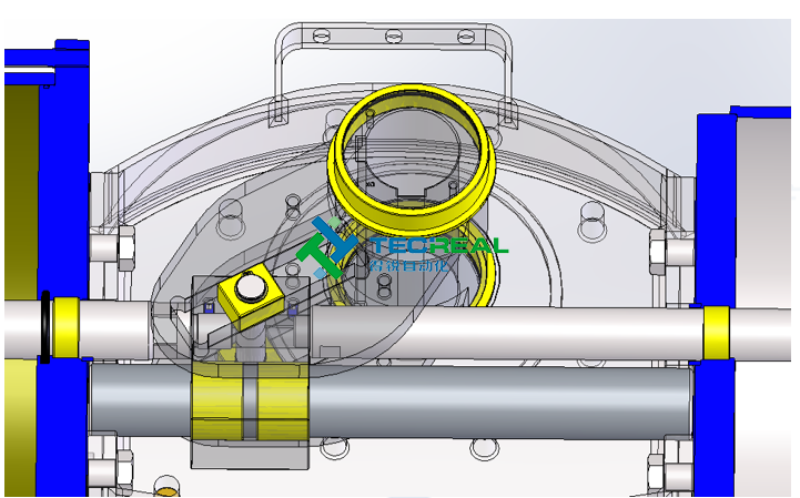 6.缸體內(nèi)表面及撥叉(紅色部分)具有防腐蝕作用。中央機(jī)構(gòu)的防護(hù)等級(jí)為IP67,中央機(jī)構(gòu)的上蓋允許在執(zhí)行器不從閥門處拆卸的情況下打開,進(jìn)行檢查及維護(hù)。