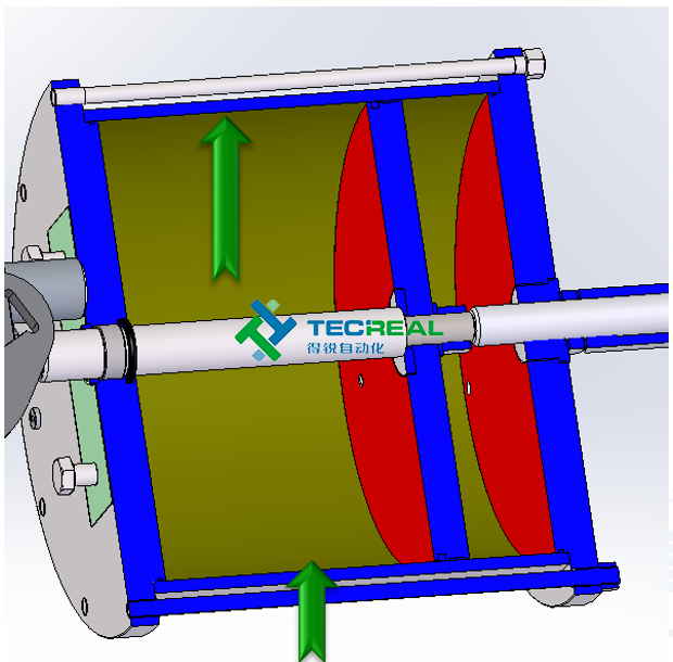 這種執(zhí)行機(jī)構(gòu),撥叉是位于中央機(jī)構(gòu)控制活塞運(yùn)動(dòng),但與氣缸活塞是分開的,這就解決了很多的密封問(wèn)題,并且允許使用各種氣體或是液體控制,而不是只有空氣作為氣源.例如:水,氣體甲烷等。
