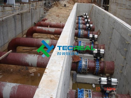 管廊里空間狹小,要在線拆卸伸縮節(jié)和整只氣動調(diào)節(jié)閥來更換密封圈,過程要用吊車和最少三人需要相當(dāng)一段時間來更換,在這個時間內(nèi)整個一組池都不能工作,并造成高額的人工與配件費用,經(jīng)常這樣會給水廠帶來很大的損失,直接影響出水和進水的效果,并且給城市居民用水及工業(yè)生產(chǎn)帶來麻煩。
