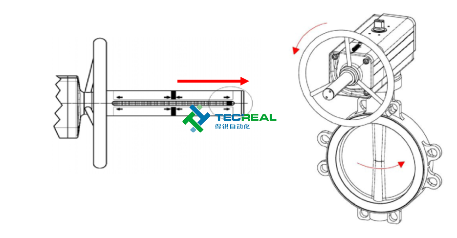 逆時針旋轉手輪時打開閥門,手輪操作必須在執(zhí)行器沒有氣源壓力時進行