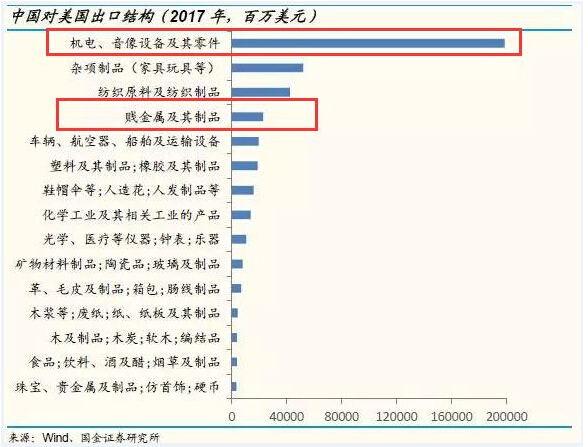 (中國出口機(jī)電、賤金屬及其制品占比大)