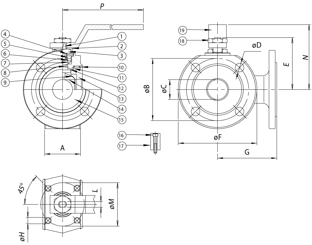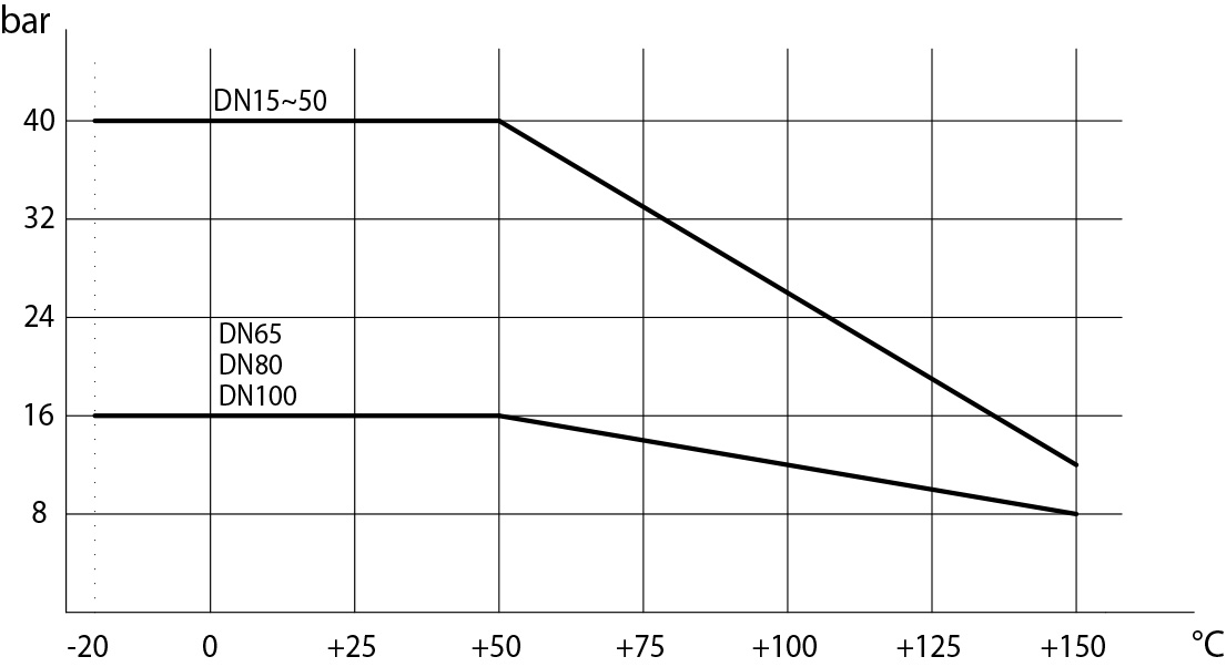 法蘭連接要求:符合EN 1092-1 PN40 至 DN50; PN16 DN65,50,100 EN 12516標準。