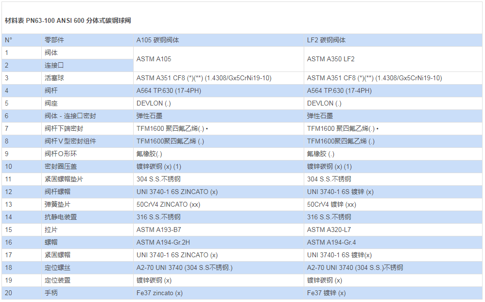 | (**): 對(duì)于公稱通徑 ≤DN32 的閥門,僅能提供 CF8M材料的? |