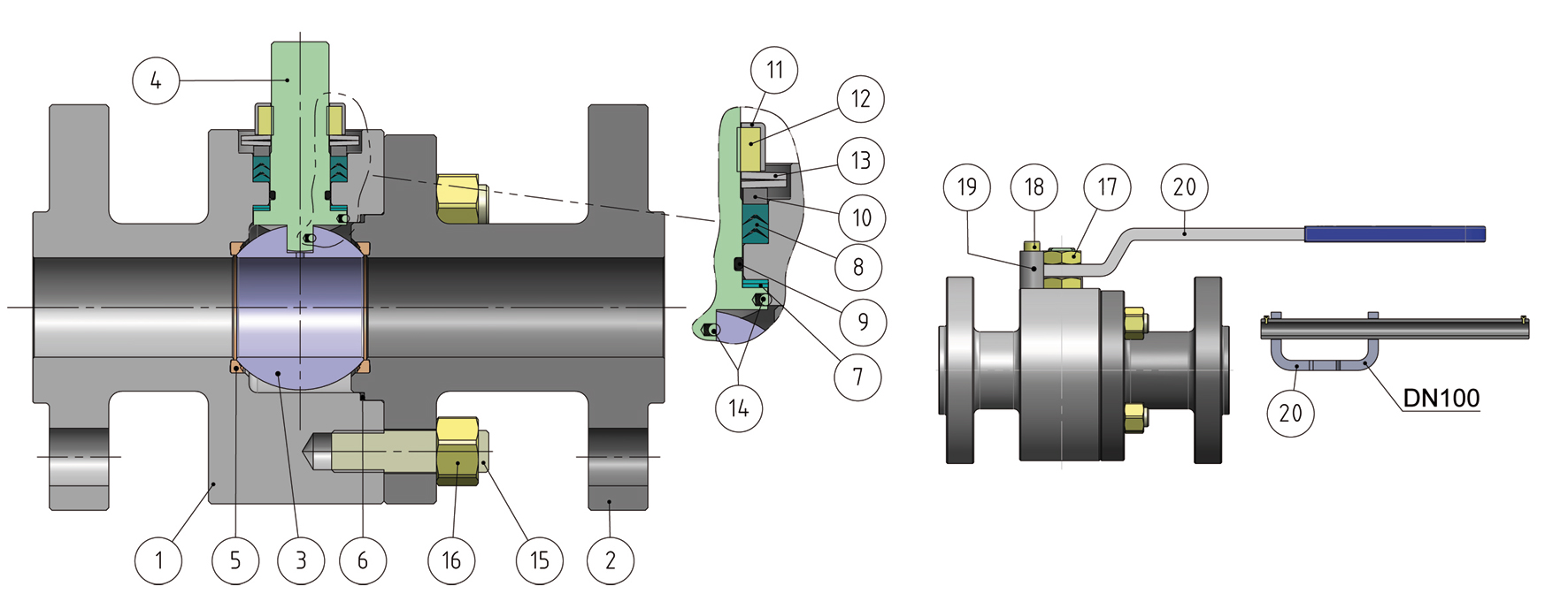 密封材料:PTFE加玻璃(RPTFE-GF),PTFE加碳石墨(RPTFE-CF)。如需其它密封材料,請(qǐng)與我們的銷售部門聯(lián)系。