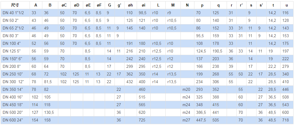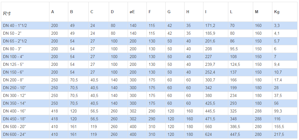 法蘭標(biāo)準(zhǔn):型號(hào)PN 10 - PN 16 - ANSI 150不銹鋼: 公稱(chēng)通徑從 DN 40 至 DN 300。