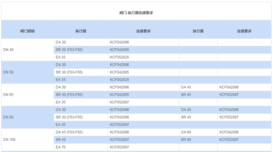 后面幾頁(yè)表中所列的執(zhí)行器與閥門(mén)對(duì)接標(biāo)準(zhǔn),適用于液體或氣體、清潔和中等溫度介質(zhì)的閥門(mén)。為獲取更詳細(xì)的信息資料,請(qǐng)與我們的技術(shù)部門(mén)聯(lián)系。