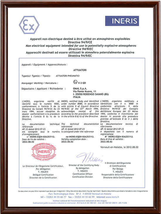 OMAL Pneumatic valves VIP-ANGLE SEAT VAP